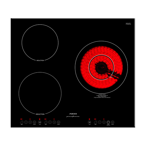 Bếp điện từ Munchen QA 300I kết hợp 2 vùng nấu từ sử dụng công nghệ induction zoneless cho phép nhận diện đường kính nồi, tập trung nhiệt truyền trực tiếp vào đáy nồi và 1 vùng nấu hồng ngoại sử dụng linh kiện nhiệt EGO với 2 vòng tách nhiệt kích thước lớn người dùng có thể tùy chỉnh để phù hợp với kích thước nồi tiết kiệm tối đa lượng điện năng tiêu thụ. Bếp điện từ Munchen QA 300I được tích hợp chức năng tự động san nhiệt IC5 cho phép 3 vùng nấu khi đạt công suất tối đa có thể tự động san nhiệt cho nhau đến một mức quy định nhằm giảm tải cho dây điện tránh hiện tượng quá tải gây chập cháy.
