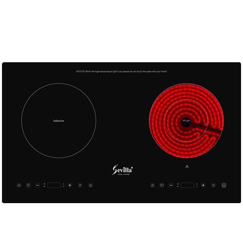 Bếp điện từ Sevilla SV- 802IH tích hợp 1 vùng nấu từ và 1 vùng nấu hồng ngoại Double-High Light lớn với 2 vùng đốt nóng linh hoạt, vòng lớn bên ngoài có thể tắt khi bạn sử dụng nồi kích thước nhỏ hơn. Bếp điện từ Sevilla SV- 802IH có khả năng đảm bảo an toàn cao với các chức năng cảnh báo nhiệt dư vùng nấu Residual heat, chức năng khóa an toàn trẻ em Child lock, chức năng tự động tắt bếp khi để quên, khi không có nồi trên bếp Automatic switching off và hệ thống bảo vệ an toàn khi quá tải bảo vệ tuyệt đối gia đình bạn. Hơn nữa, model bếp điện từ này sở hữu đường nét thiết kế thanh thoát, mang đến cho gian bếp nhà bạn vẻ hiện đại, ấm cúng.