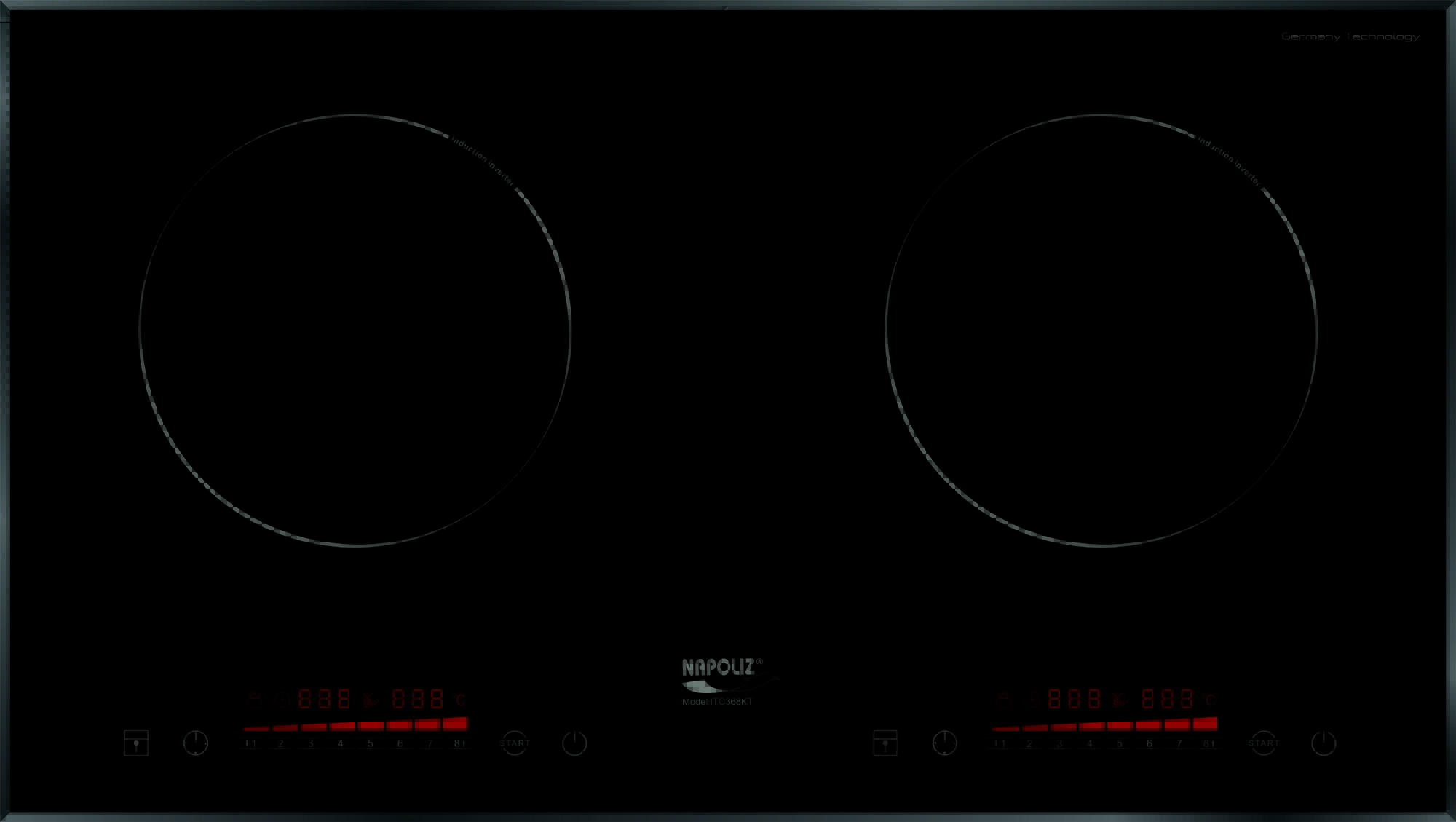 Bếp từ Napoliz ITC 668 điều khiển cảm ứng mặt kính ceramic nguyên khối với 2 vùng đun nấu cảm ứng điện từ mang kích cỡ bằng nhau giúp chế biến được những món ăn trong cùng lúc nấu. Size các bếp khác nhau phù hợp với các loại nồi từ nhỏ đến to để tốn ít điện năng rất hiệu quả.