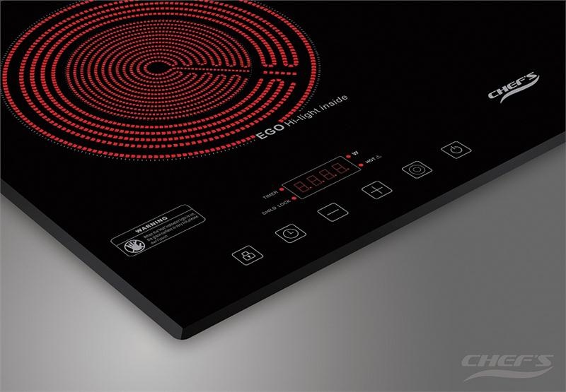 Có một điểm rất đặc biệt ở đây chính là bếp điện từ Chefs mix311 được kết hợp từ bếp từ và bếp hồng ngoại, sở hữu cả hai ưu điểm của hai dòng bếp này. Bên mặt bếp hồng ngoại có mâm nhiệt EGO với hai vòng nhiệt, cơ chế hoạt động của bếp hồng ngoại là dòng điện hai chiều truyền đến bếp và làm nóng bề mặt của bếp từ đó là nóng nồi. Còn của bếp từu lại khác đó là không làm nóng mặt bếp mà làm nóng trực tiếp nồi và nhiệt lượng của nồi tỏa ra mới làm nóng mặt bếp. Bếp điện từ Chefs mix311 thích hợp với tất cả loại nồi từ những nồi chuyên dụng chỉ để sử dụng bếp từ cho đến những loại nồi được làm bằng sứ, gốm,...
